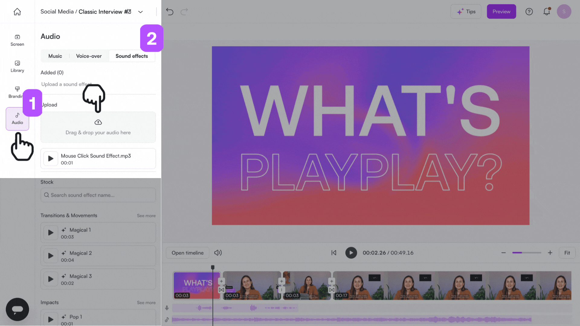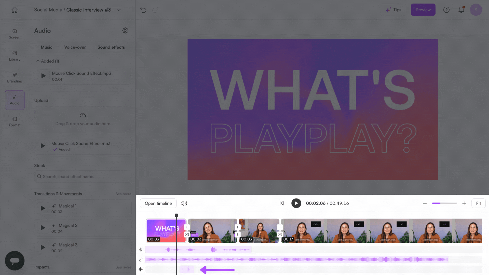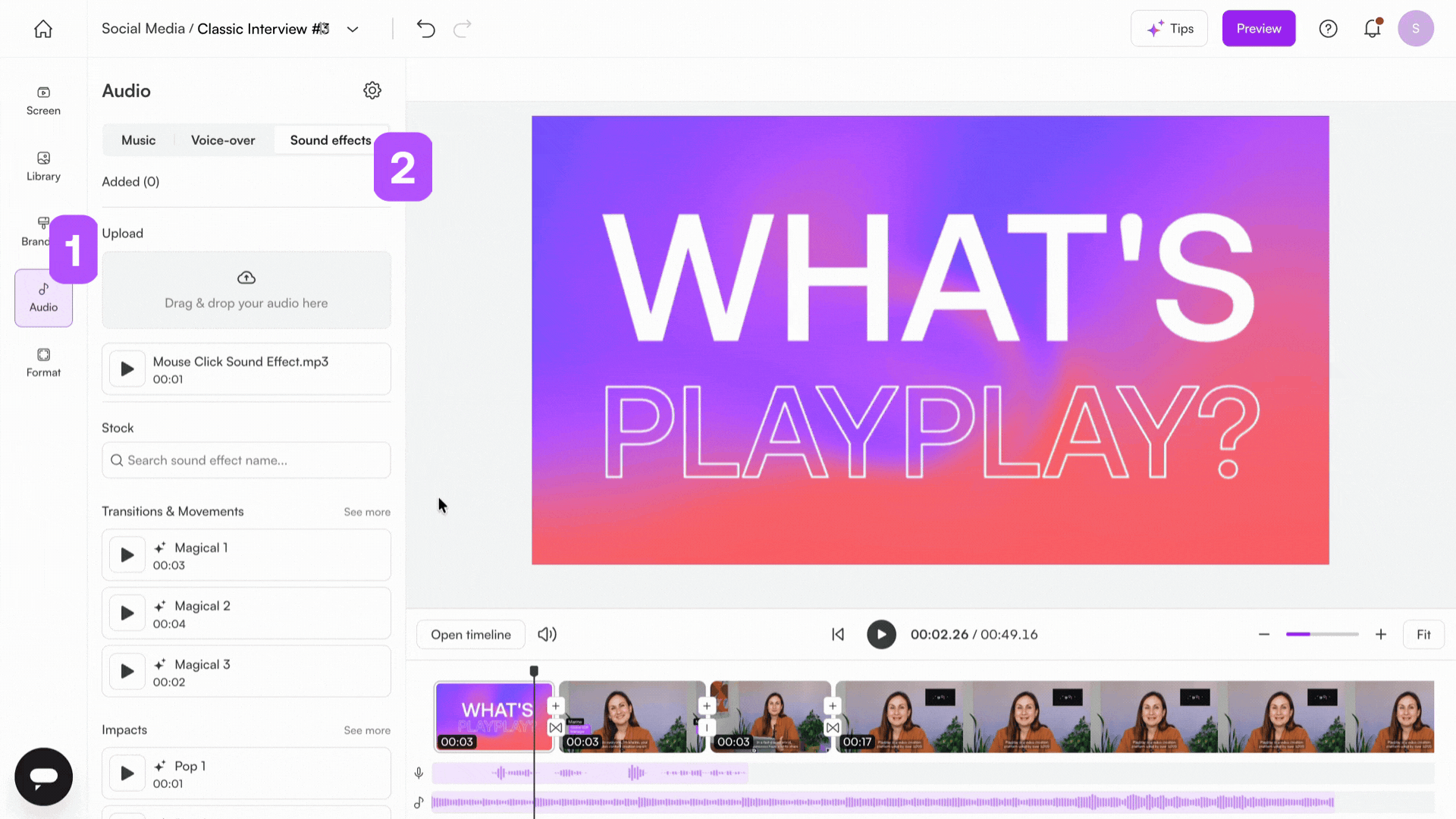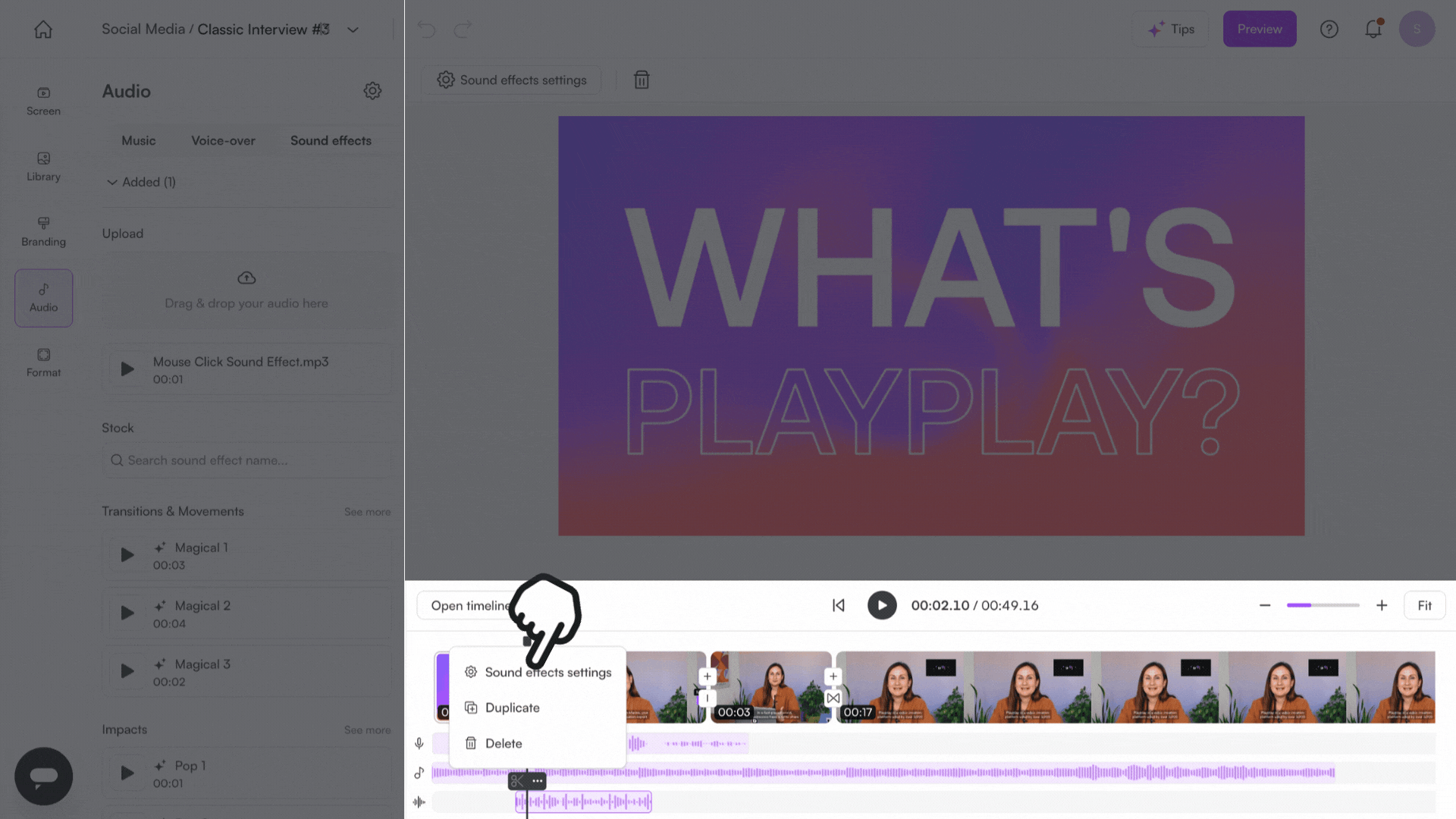 PlayPlay allows you to easily add sound effects to your videos, making them more dynamic and engaging.