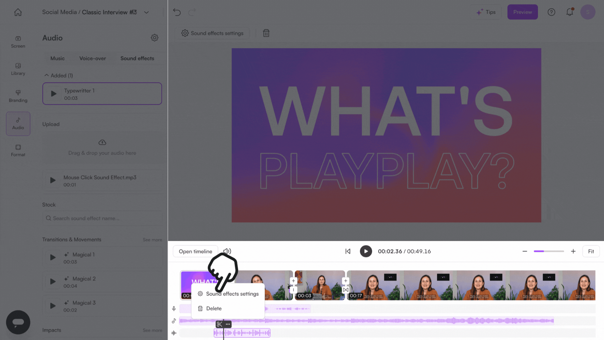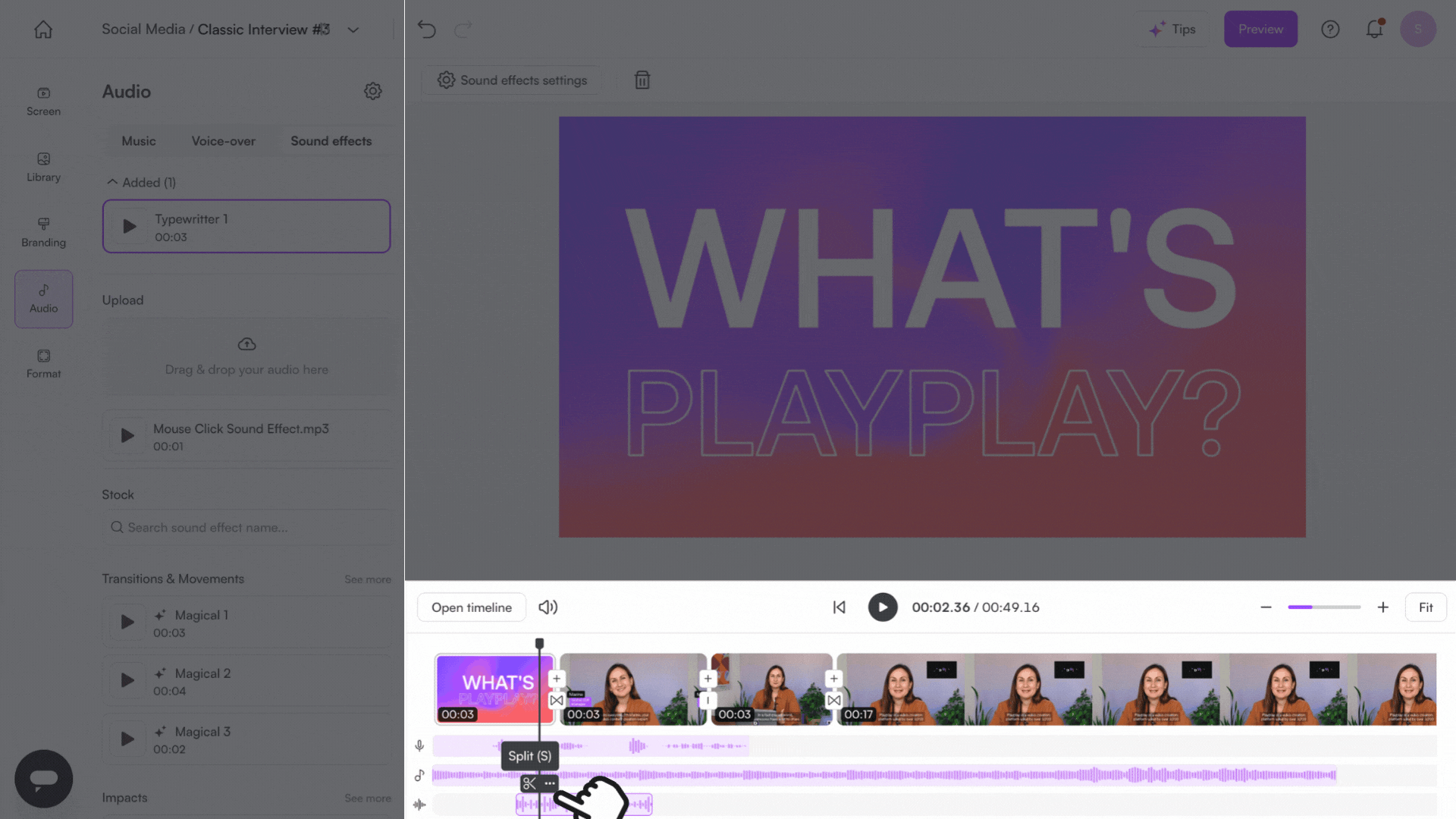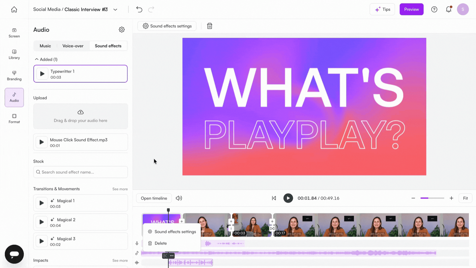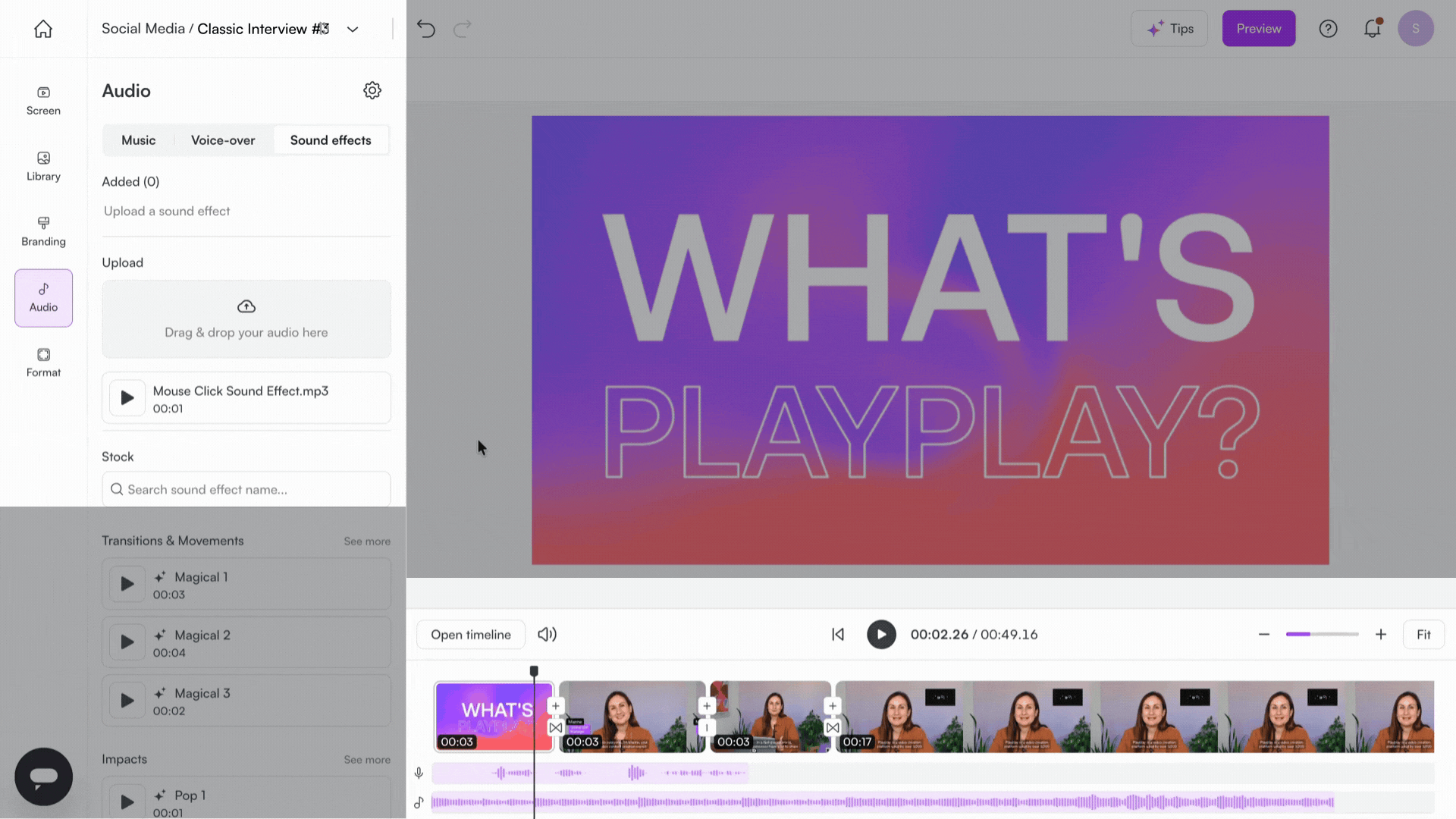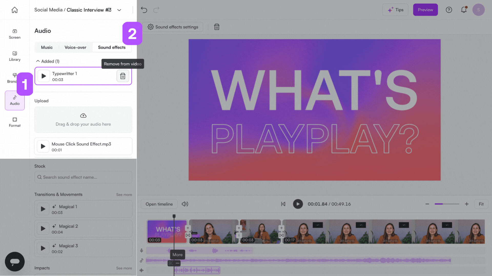 PlayPlay allows you to easily add sound effects to your videos, making them more dynamic and engaging.